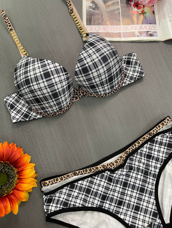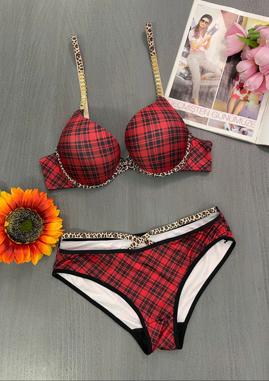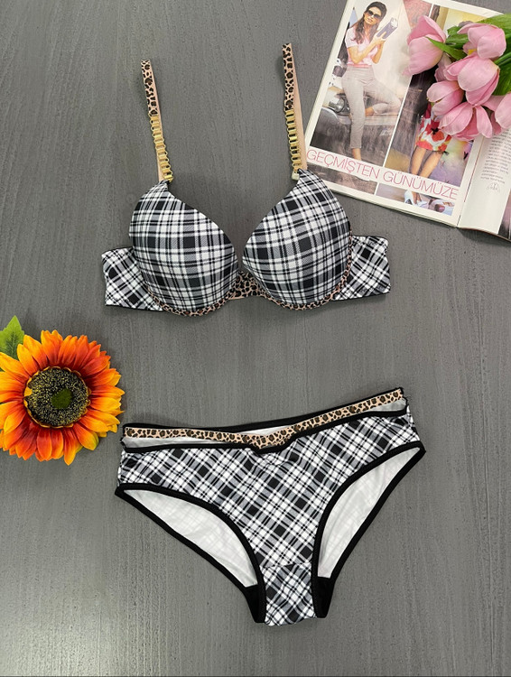 ست اسفنجی / بند سرشانه دارای زنجیر رنگ ثابت / سایز ۸۰ به ۷۵ هم میخوره /سایز شورت فری مناسب تا ۴۲ / نیم جک / ایستایی عالی