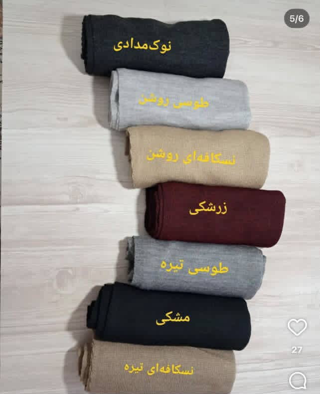 / سفيد / مشكي / زرد / قرمز / طوسي تيره / طوسي روشن / استخواني / نسكافه اي / قهوه اي / كرم